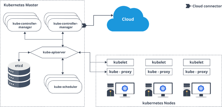 The kube – apiserver follows the scale-out architecture and, is the front-end of the master node control panel. This exposes all the APIs of the Kubernetes Master node components and is responsible for establishing communication between Kubernetes Node and the Kubernetes master components.