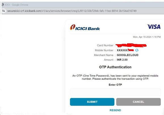 Enter card details, confirm, and input CVV and OTP. A minimal charge will be deducted, refundable in 2-3 days. Verify the card and save it for auto-pay. Proceed to payment. Enter OTP on the pop-up window. Ensure auto-pay is enabled. Google charges a minimal fee (e.g., 2 INR) for card verification. The amount deducted was refunded in 2-3 days. Redirected to the payment gateway for validation.
