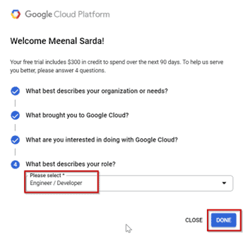 The Google Cloud Free Trial is mainly designed to give hands-on experience with Google Cloud Services for customers free of cost for 90 days or till you’ve spent the $300 in credits.