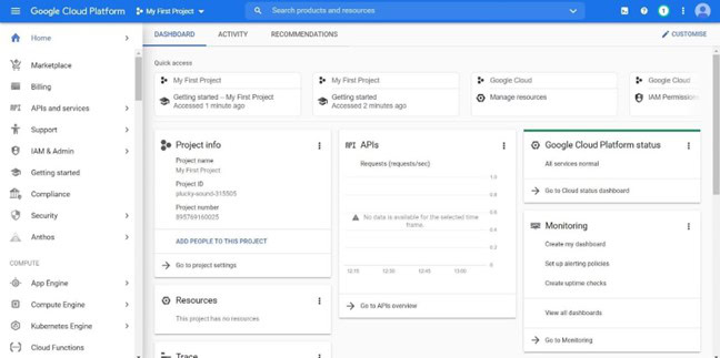 Step 19: After successful log-in, you will be redirected to the Google Cloud Console homepage.