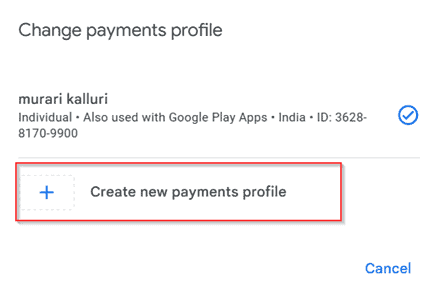 Step 6: Click on Create New Payment Profile. You can create only one individual profile for payment with one email, if you want to create more than one, you need to create on Organization name.