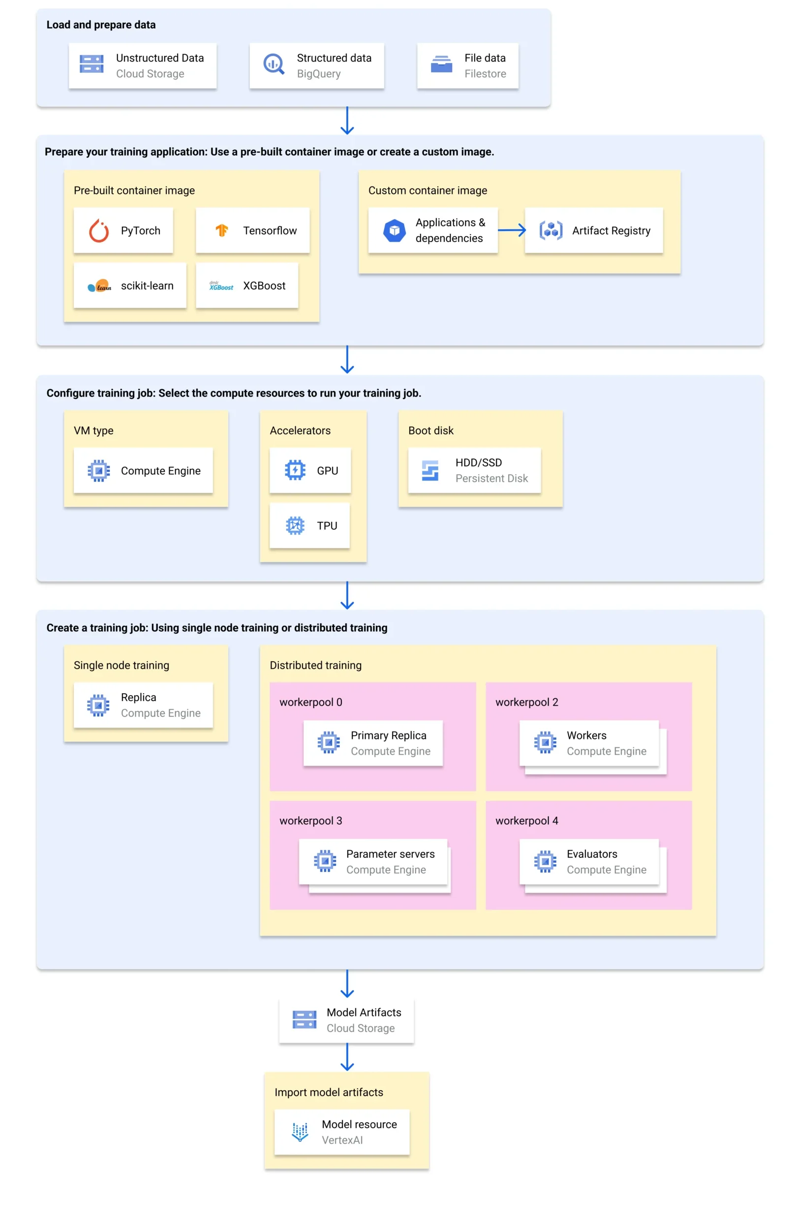 - Custom Containers: You can package your model code, dependencies, and environment in a Docker container, which ensures portability and consistency across different environments. Vertex AI will run your container on Google Cloud infrastructure.