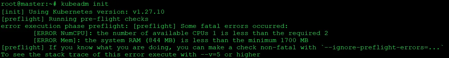 The error message you are encountering is generated by the kubeadm init command, indicating that your system does not meet the minimum requirements for installing Kubernetes. Let’s break down the message to improve understanding: