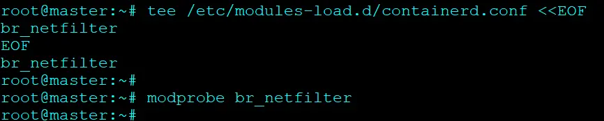 tee /etc/modules-load.d/containerd.conf <<EOF br_netfilter EOF
