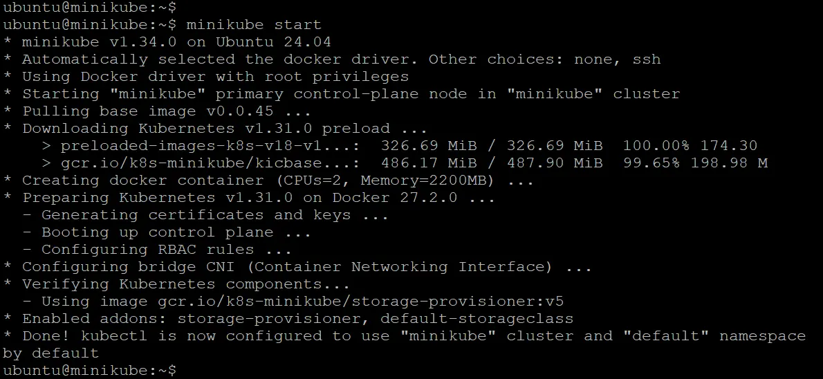 - Start the Minikube cluster: