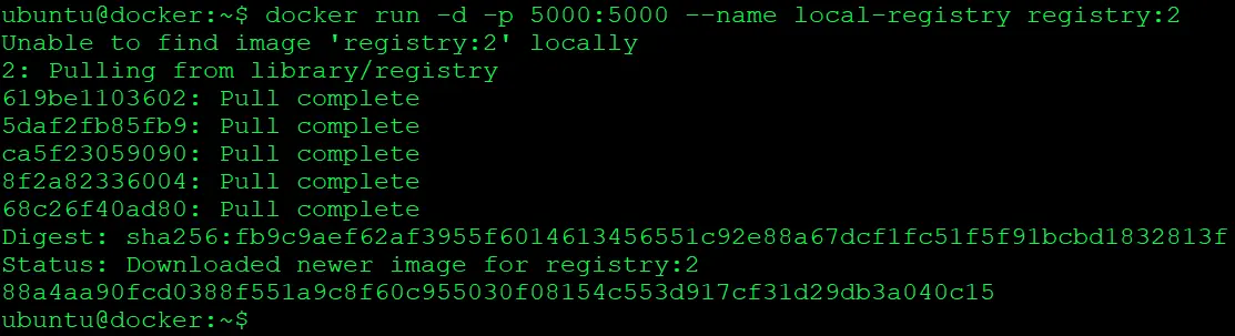 This command runs the registry on port 5000 and detaches it to run in the background.