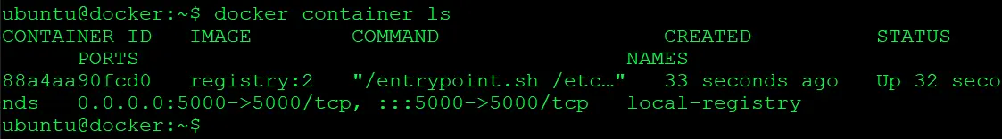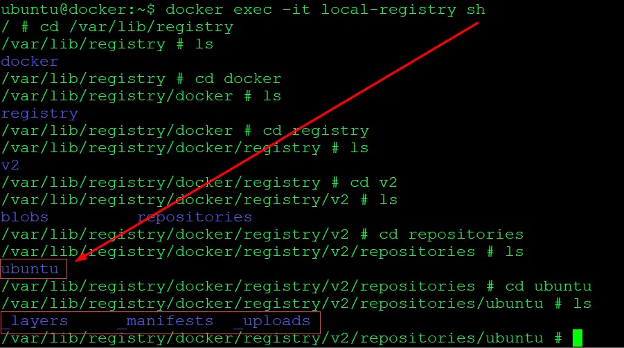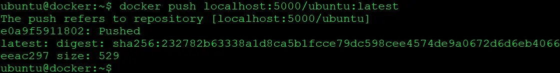 $ docker push localhost:5000/ubuntu:latest