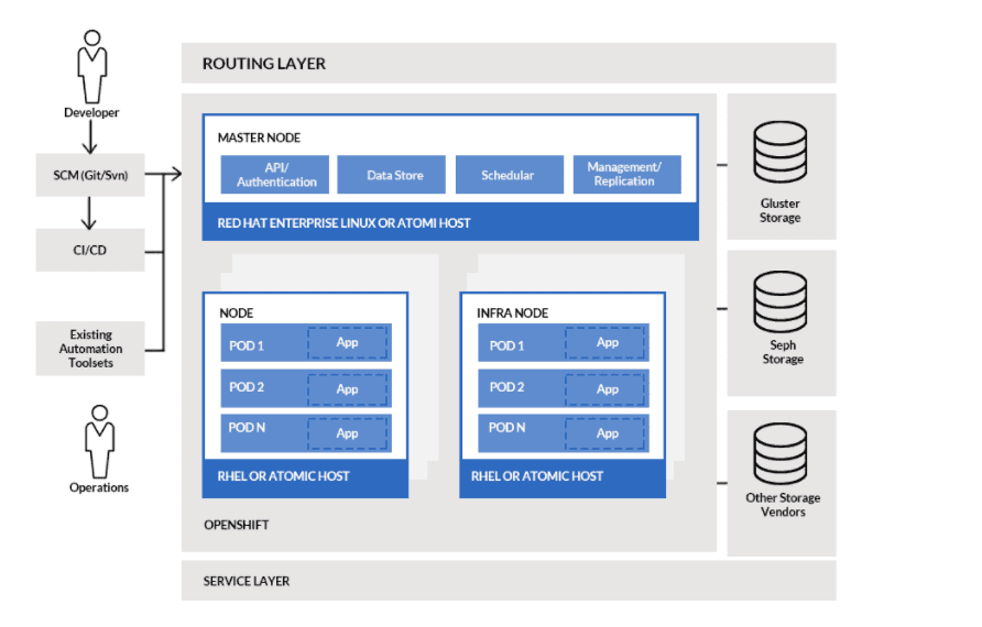 OpenShift consists of the following layers, and each layer has its own responsibilities.