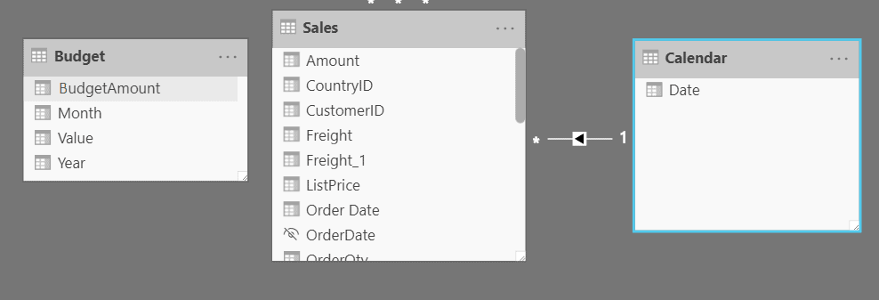 - In the above image, a relationship between Budget and Calendar is missing. Therefore, you need to create this relationship before you can build your vision.
