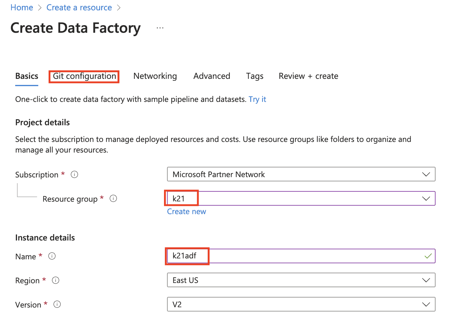 - Create an Azure data factory