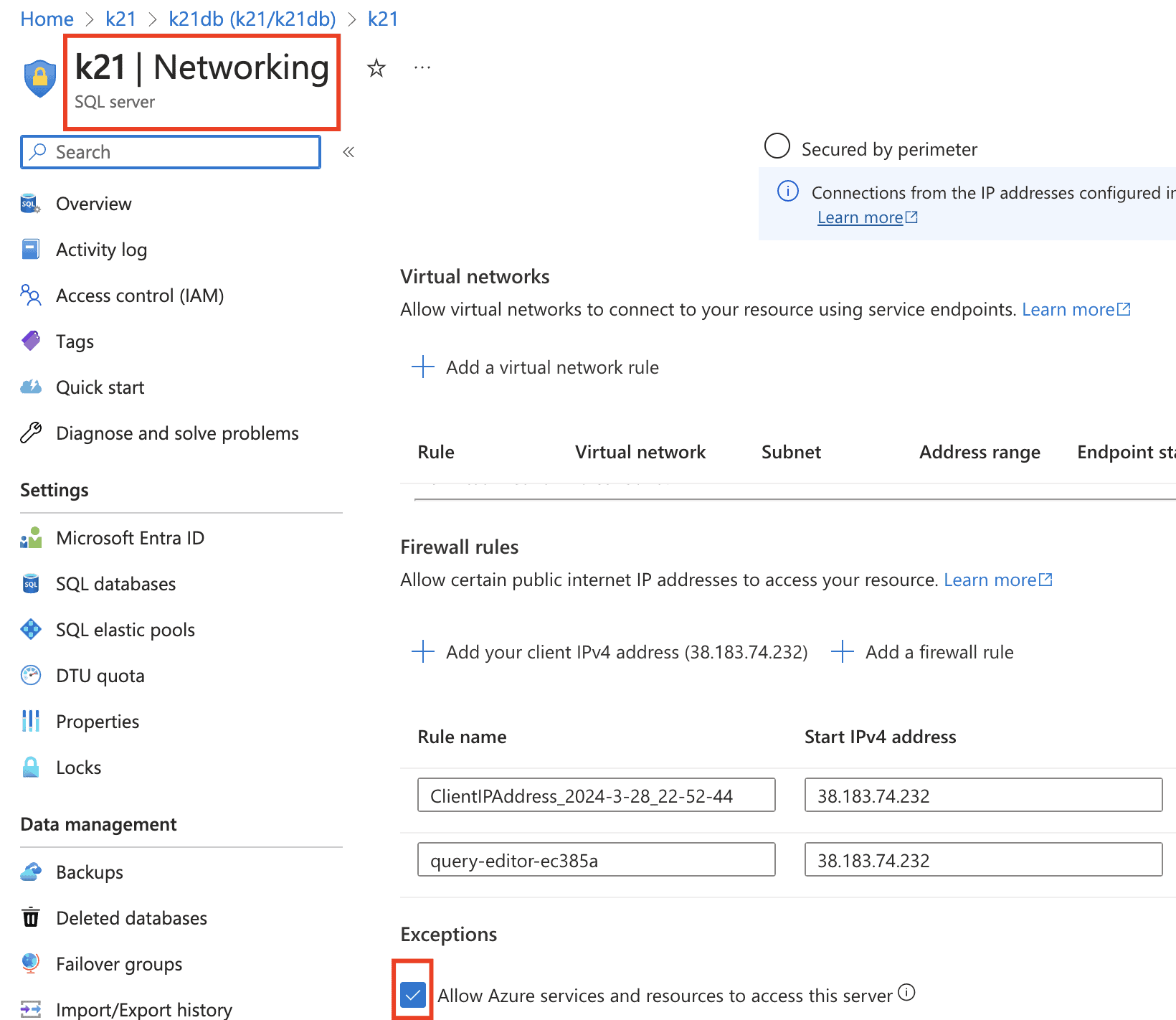 14) Test Connection may be failed. Go to your Azure SQL database, Select your database. Go to Set Server Firewall setting/Networking page. On the Firewall settings page, Select yes in Allow Azure services and resources to access this server. Then Save settings.