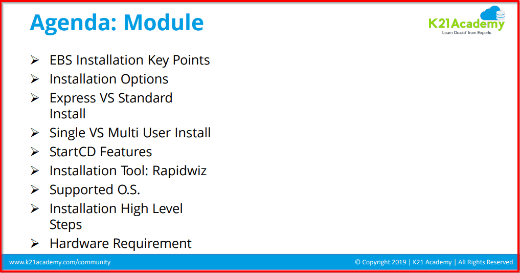 In this session, we covered Module 2: R12.2 Staging & Installation which includes the following Topics:
