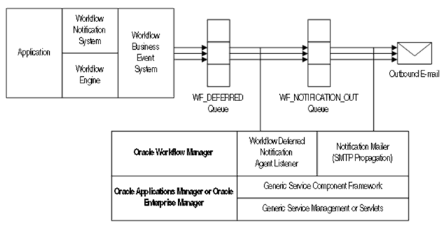 1. When workflow Engine determines that a notification message must be sent, it raises an event in BES (Business Event System) oracle.apps.wf.notifications.send Event is raised with Notification ID (NID) as event key