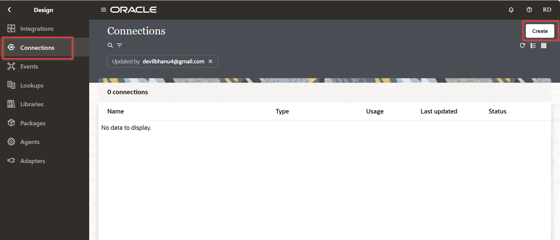 2. Click On Design And Go To Connections, And Click On Create.