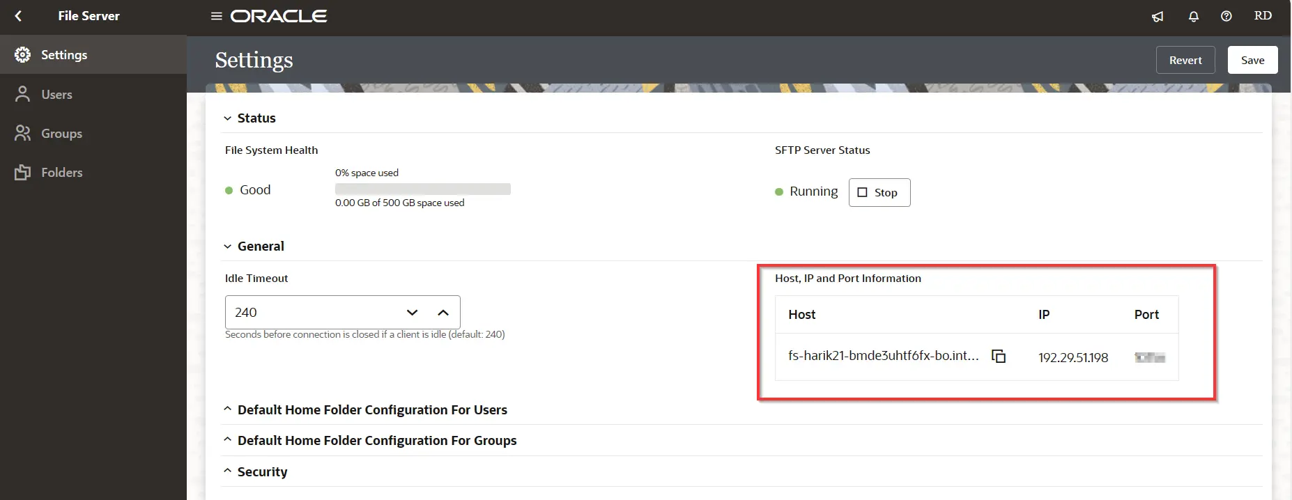 - Host and Port Details Directions: Settings -> File Server -> Settings (In OIC Provided FTP Server)