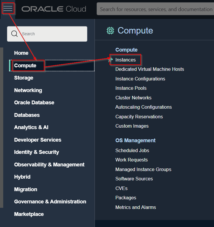 1) Navigate to Compute and click on Instances.