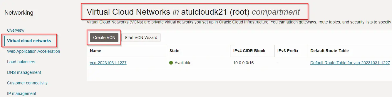 Step 1: Accessing the OCI Console and Create VCN: