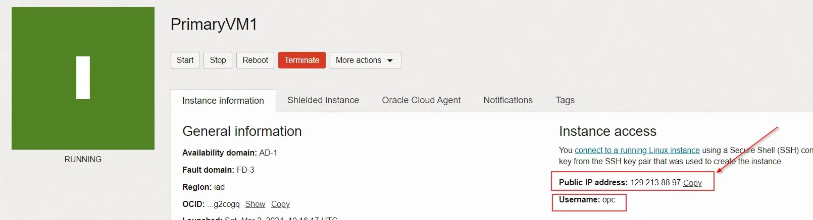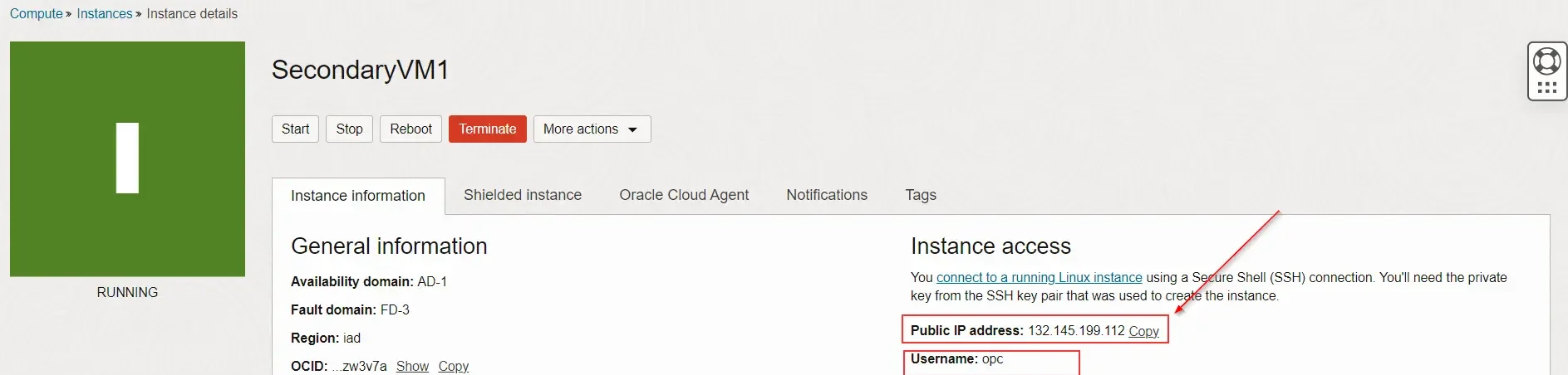 - Open SecondaryVM1 copy public IP address then connect to putty.
