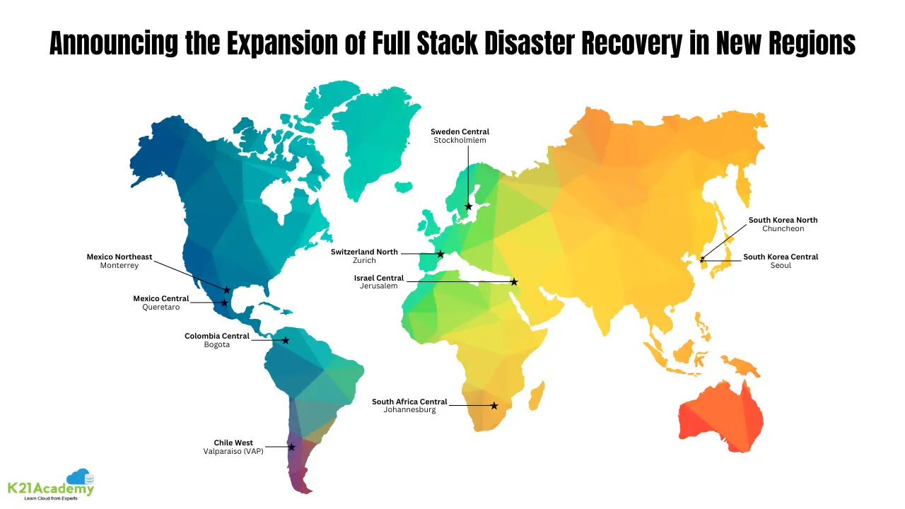 The addition of new regions expands the options for organizations to implement comprehensive disaster recovery strategies, allowing them to replicate their entire infrastructure, including compute, storage, and networking resources, in geographically dispersed locations.