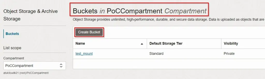 In the below image, we have seen the bucket is created in the POCCompartment.