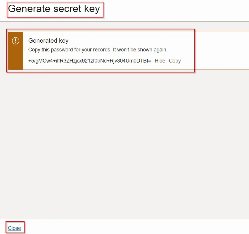 b. Now a Secret Key is listed. We also need to copy the Access Key: