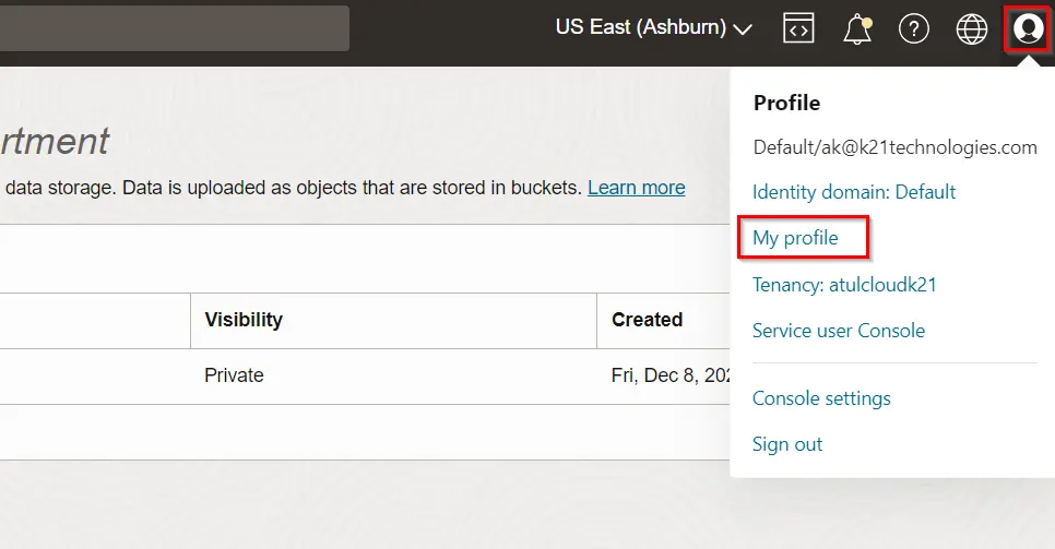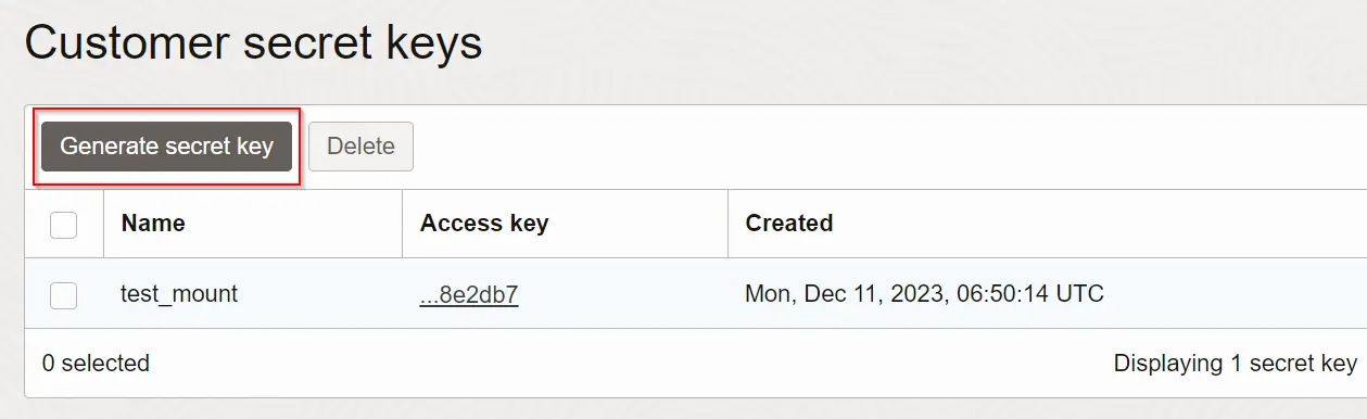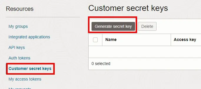 Step 4. After installing s3fs, I need to create the customer secret key that will be utilized for accessing the Object Storage
