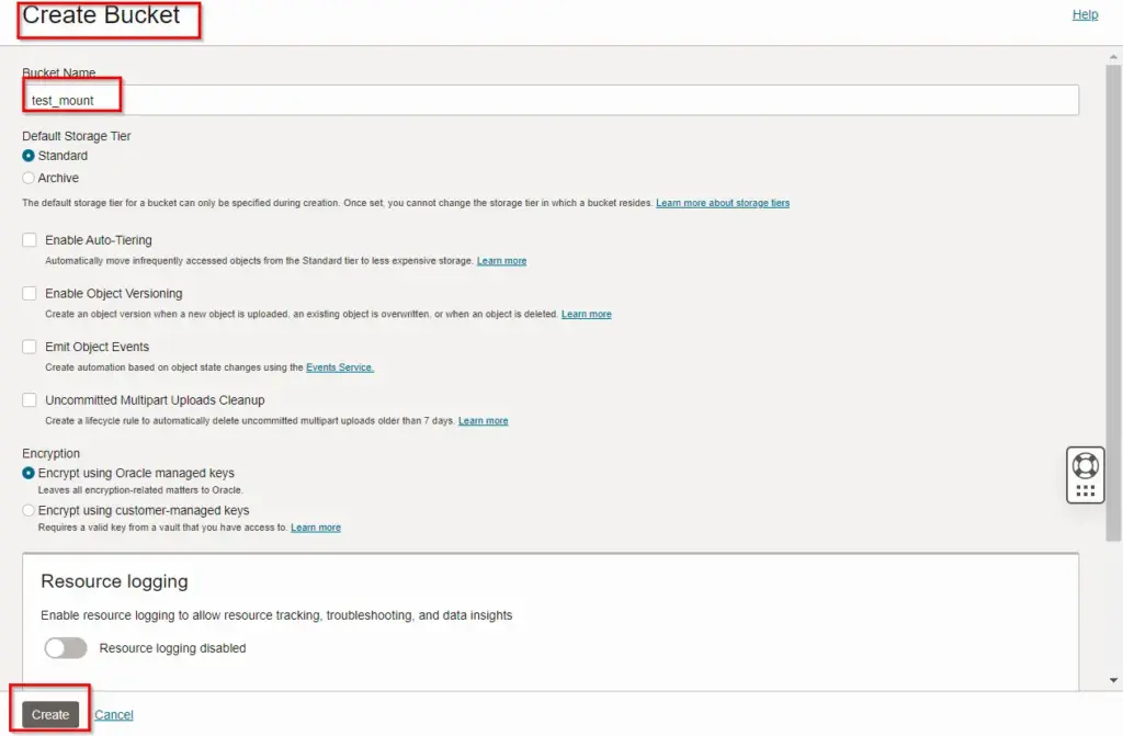 Step 1. Create a bucket from Storage > Object Storage > Bucket