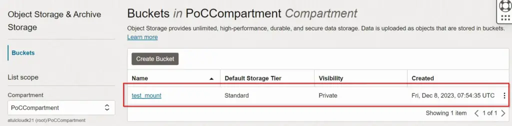 - Ensure that bucket you’re trying to mount is in the compartment listed for S3 compatibility; by default, it’s a root compartment of the tenancy.