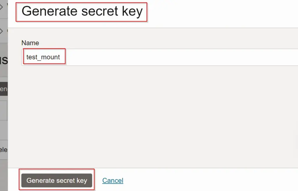3. Give the key a meaningful name (for example, s3fs-access), and then click Generate Secret Key.