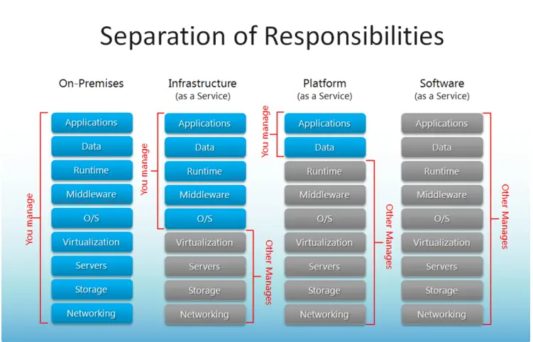 For IaaS models, the service provider hosts, maintains, and updates the backend infrastructure, such as compute, storage, networking, and virtualization. You manage everything else including the operating system, middleware, data, and applications.