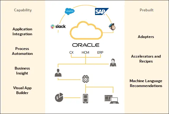 - Application and Data Integration: OIC supports application-to-application (A2A) and business-to-business (B2B) integration, enabling the exchange of data between diverse systems and partners.