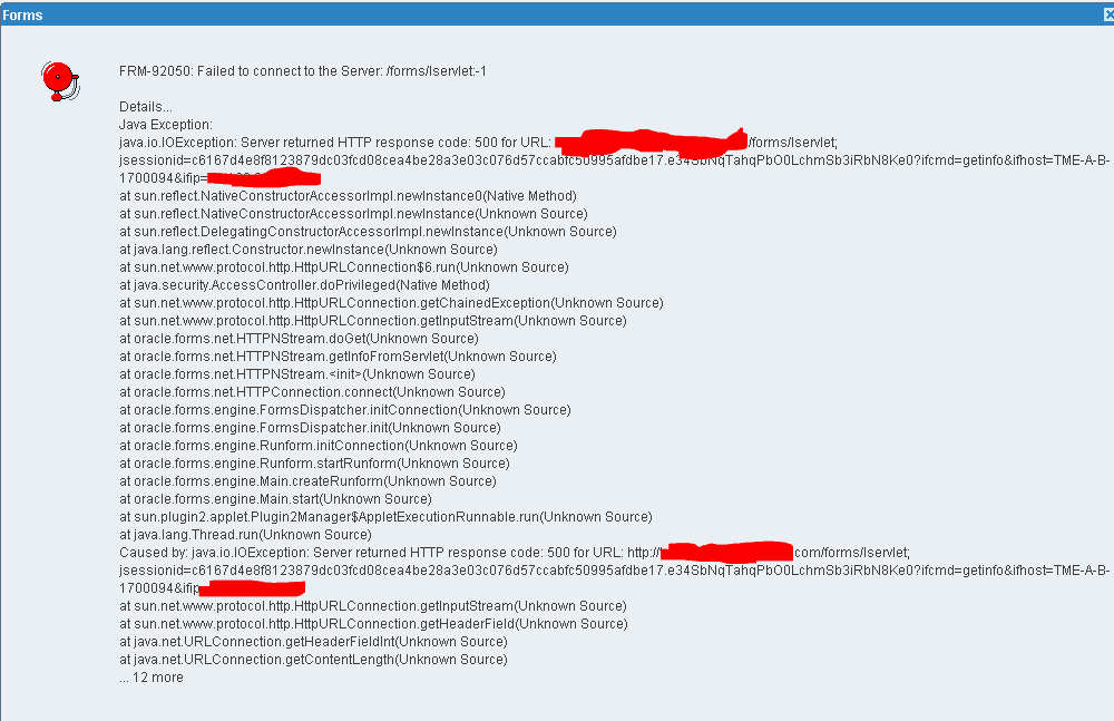 FRM-92050: Failed to connect to Server: /forms/lservlet-1