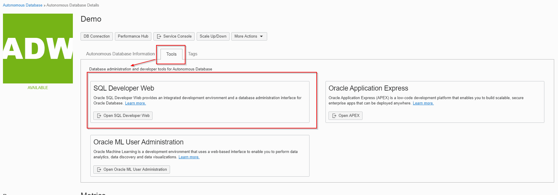 Note: To know step by step how to connect to an Autonomous database using SQL Developer web click here